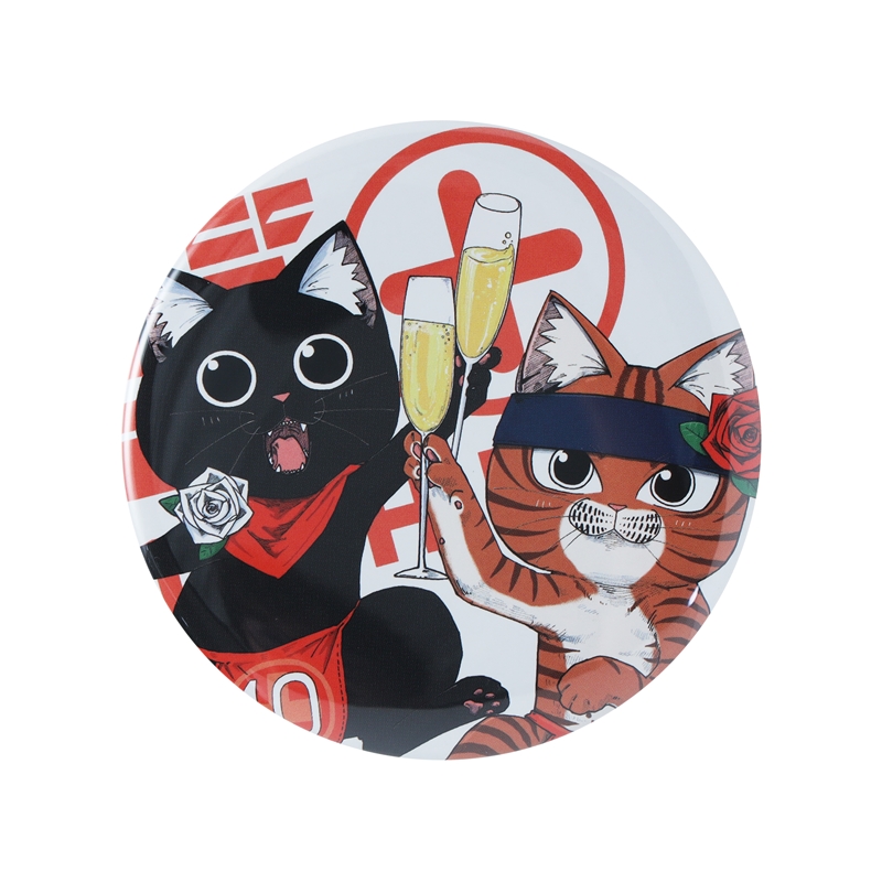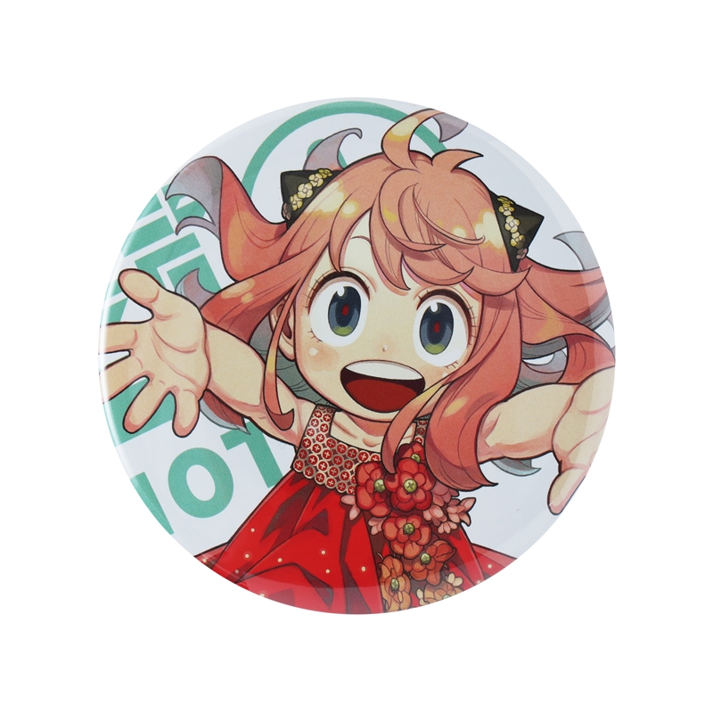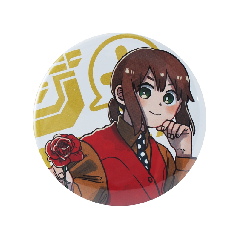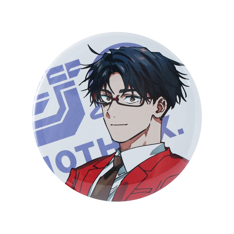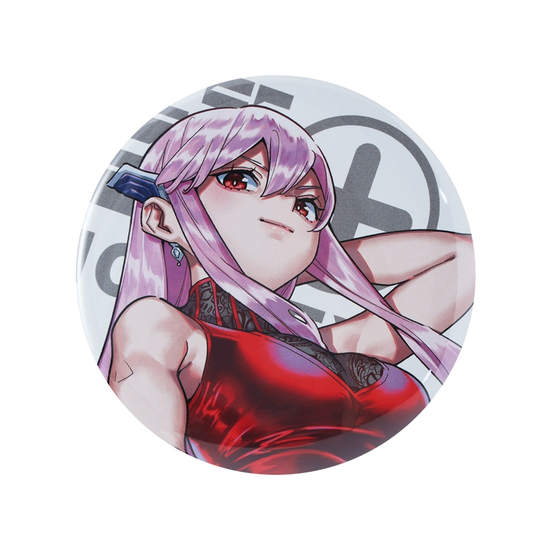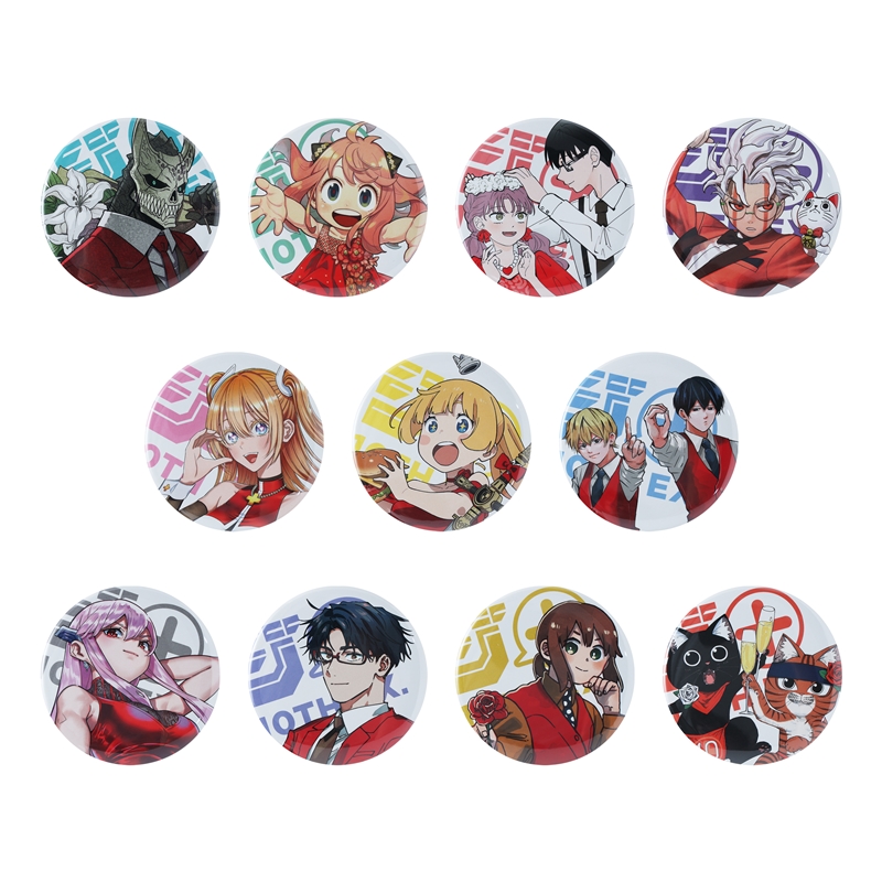 「少年ジャンプ+展」描き下ろしキービジュアルがデザインされた缶バッジ。