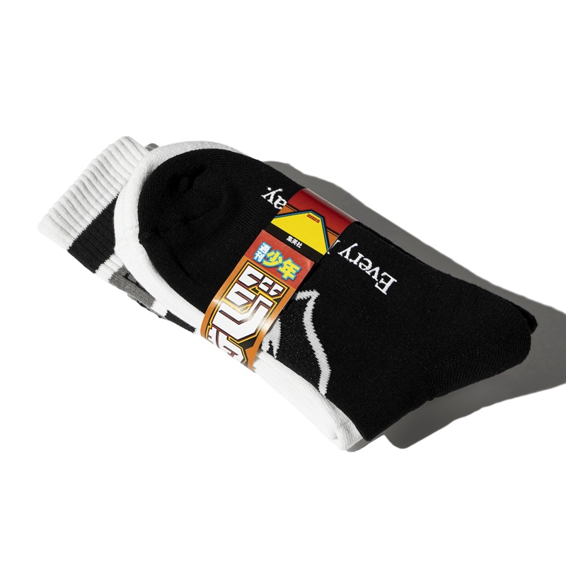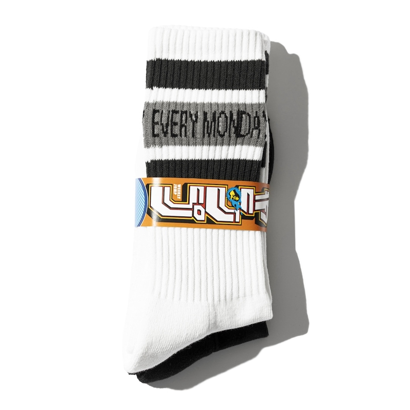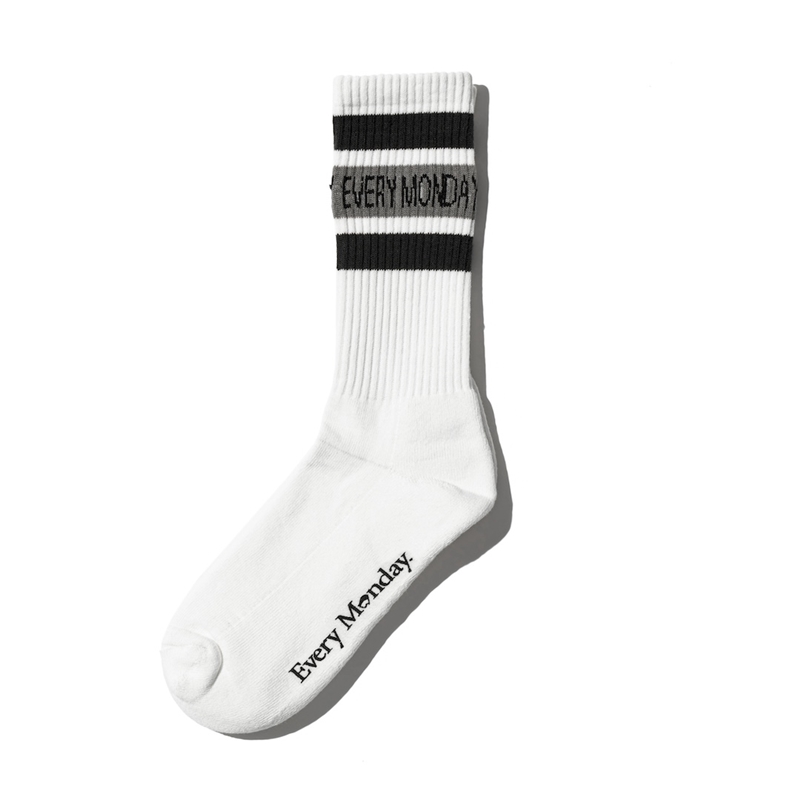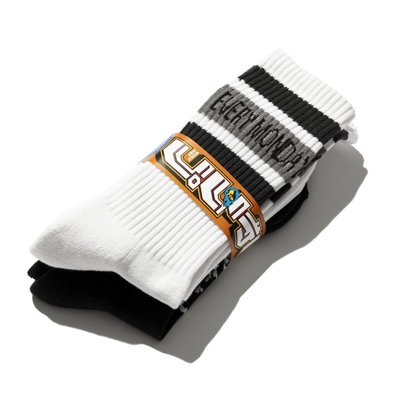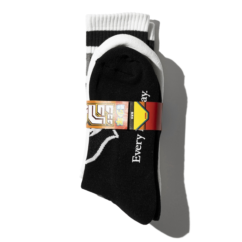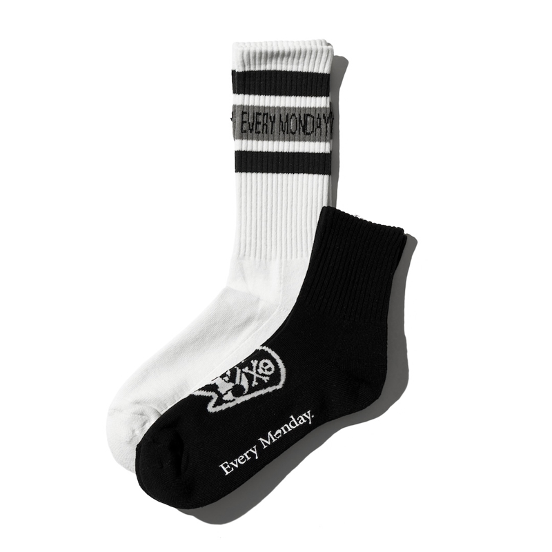 白のラインハイソックスと黒のクウォーターソックスの2パックセット。