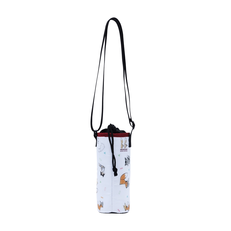 動物姿の稲荷崎高校のキャラクターたちがにぎやかにデザインされたボトルホルダー♪持ち運べるショルダーひも付き!