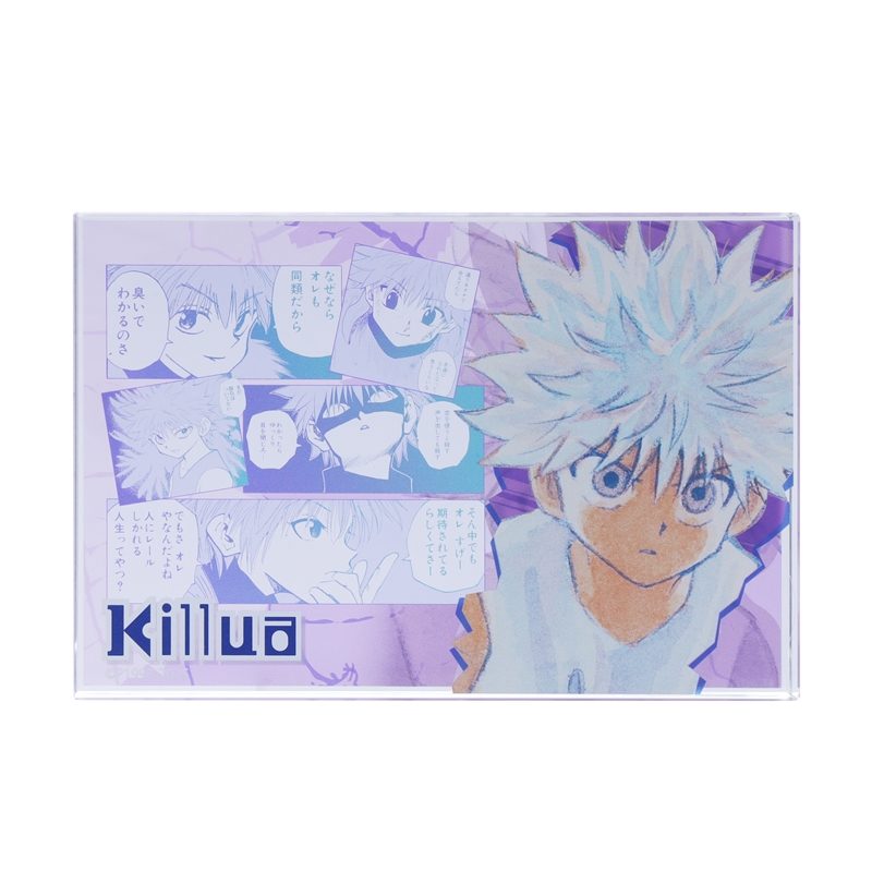 『HUNTER×HUNTER』キルア=ゾルディックのアクリルブロック!厚さ20mmのアクリルは存在感MAX!!キルア=ゾルディックのかっこいいカラーカットの背面には、名シーンのコマが散りばめられているぞ。インテリアにぴったり!