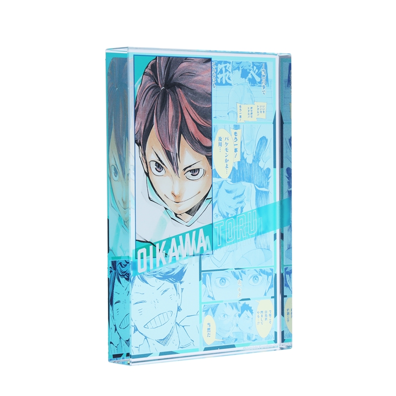 『ハイキュー!!』及川徹のアクリルブロック!厚さ20mmのアクリルは存在感MAX!!及川徹のかっこいいカラーカットの背面には、名シーンのコマが散りばめられているぞ。インテリアにぴったり!