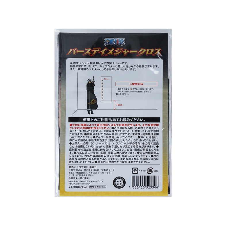 バースデイアイテムのニューカマー☆「バースデイメジャークロス」が登場!!!『ONE PIECE』トラファルガー・ローの身長&誕生日が名シーンとともにプリントされているぞ!身長の高さにあわせて壁に貼ると、トラファルガー・ローと背比べもできる!!!