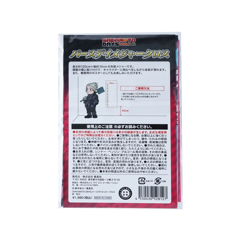 バースデイアイテムのニューカマー☆「バースデイメジャークロス」が登場!!!『SAKAMOTO DAYS』楽の身長&誕生日が名シーンとともにプリントされているぞ!身長の高さにあわせて壁に貼ると、楽と背比べもできる!!!