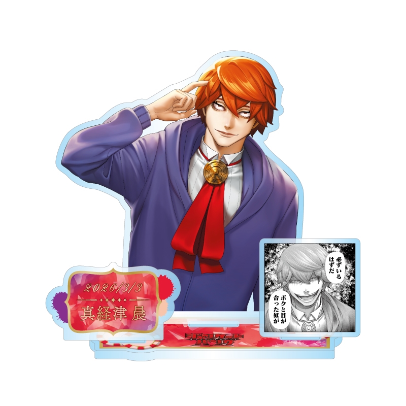 『ジャンケットバンク』真経津晨のカラーイラスト+作中の名場面のコマイラスト+名前&誕生日パーツが立体的に組みあがった、アクリルジオラマフィギュア!
