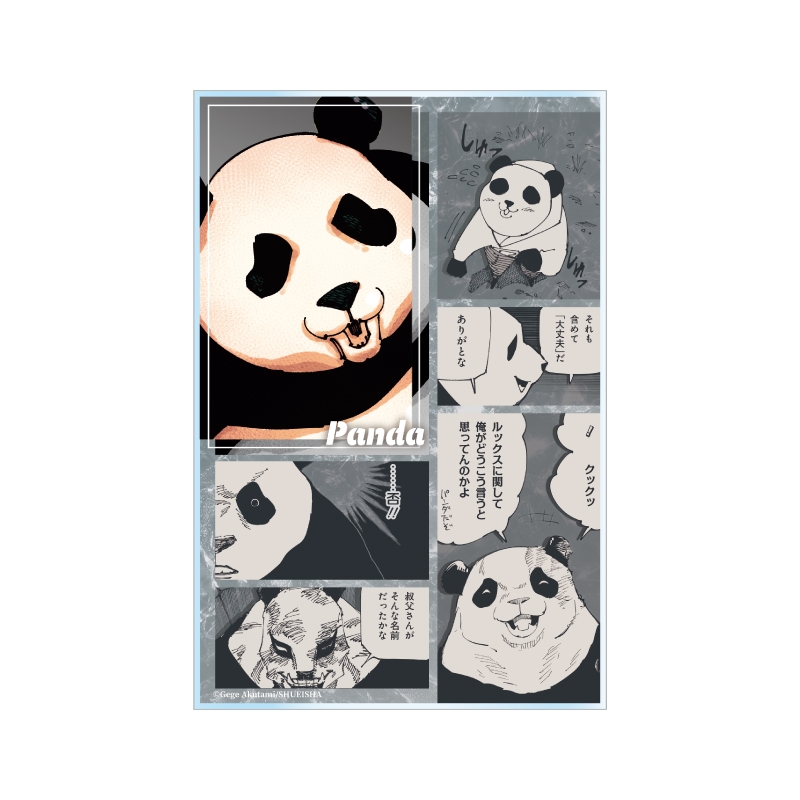 『呪術廻戦』パンダのアクリルブロック!厚さ20mmのアクリルは存在感MAX!!パンダのかっこいいカラーカットの背面には、名シーンのコマが散りばめられているぞ。インテリアにぴったり!