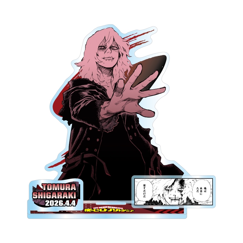『僕のヒーローアカデミア』死柄木弔のイラスト+作中の名場面のコマイラスト+名前&誕生日パーツが立体的に組みあがった、アクリルジオラマフィギュア!