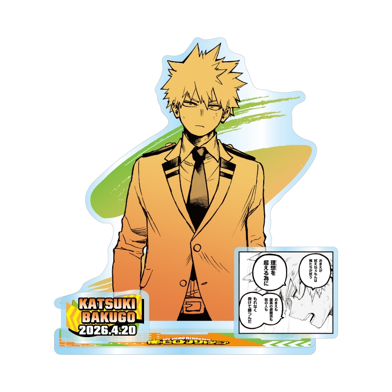 『僕のヒーローアカデミア』爆豪勝己のイラスト+作中の名場面のコマイラスト+名前&誕生日パーツが立体的に組みあがった、アクリルジオラマフィギュア!
