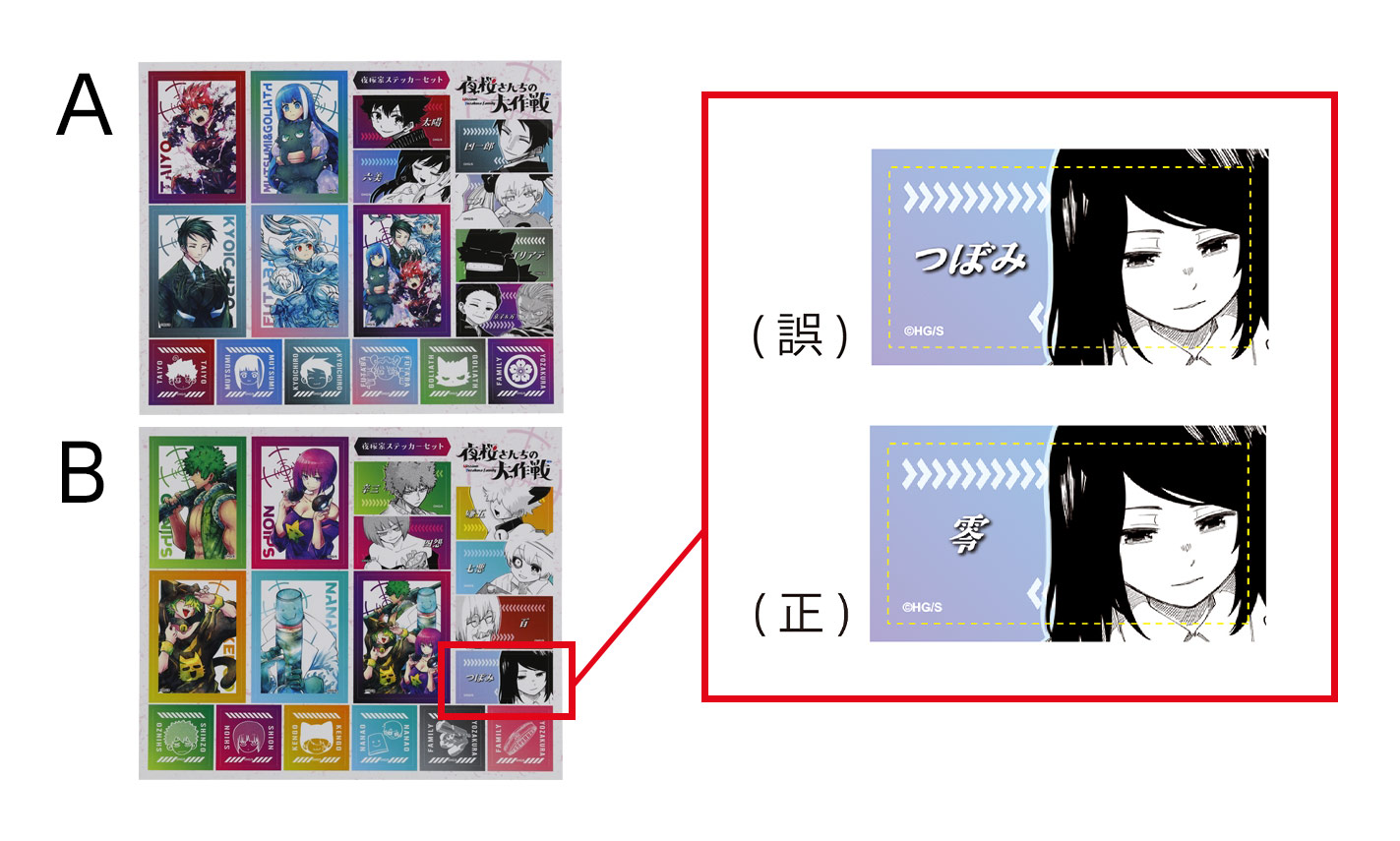 この度、下記にて販売をいたしました「『夜桜さんちの大作戦』夜桜家ステッカーセット BC4-JF」におきまして、「零」の名前表記に誤りがあることが判明いたしました。お客様には心よりお詫び申し上げます。